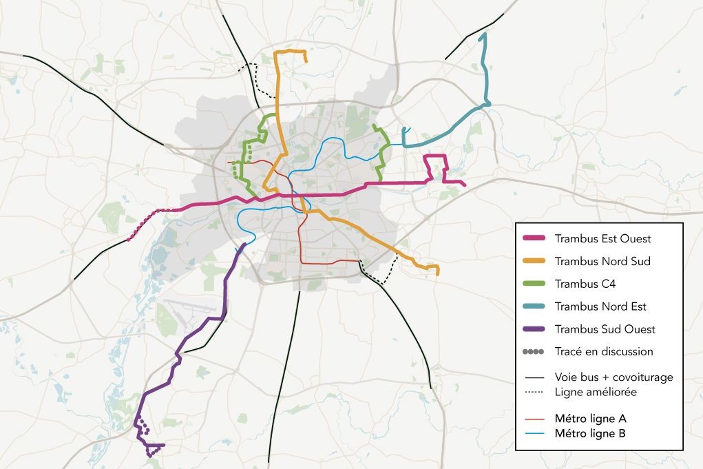C’est en prévision de la hausse de fréquentation du métro, du fait de l’ouverture d’une deuxième ligne en 2022, et pour répondre à l’augmentation de la population (plus 5 000 habitants par an dans la métropole), que les élus ont acté, en 2019, la réalisation de lignes de trambus.